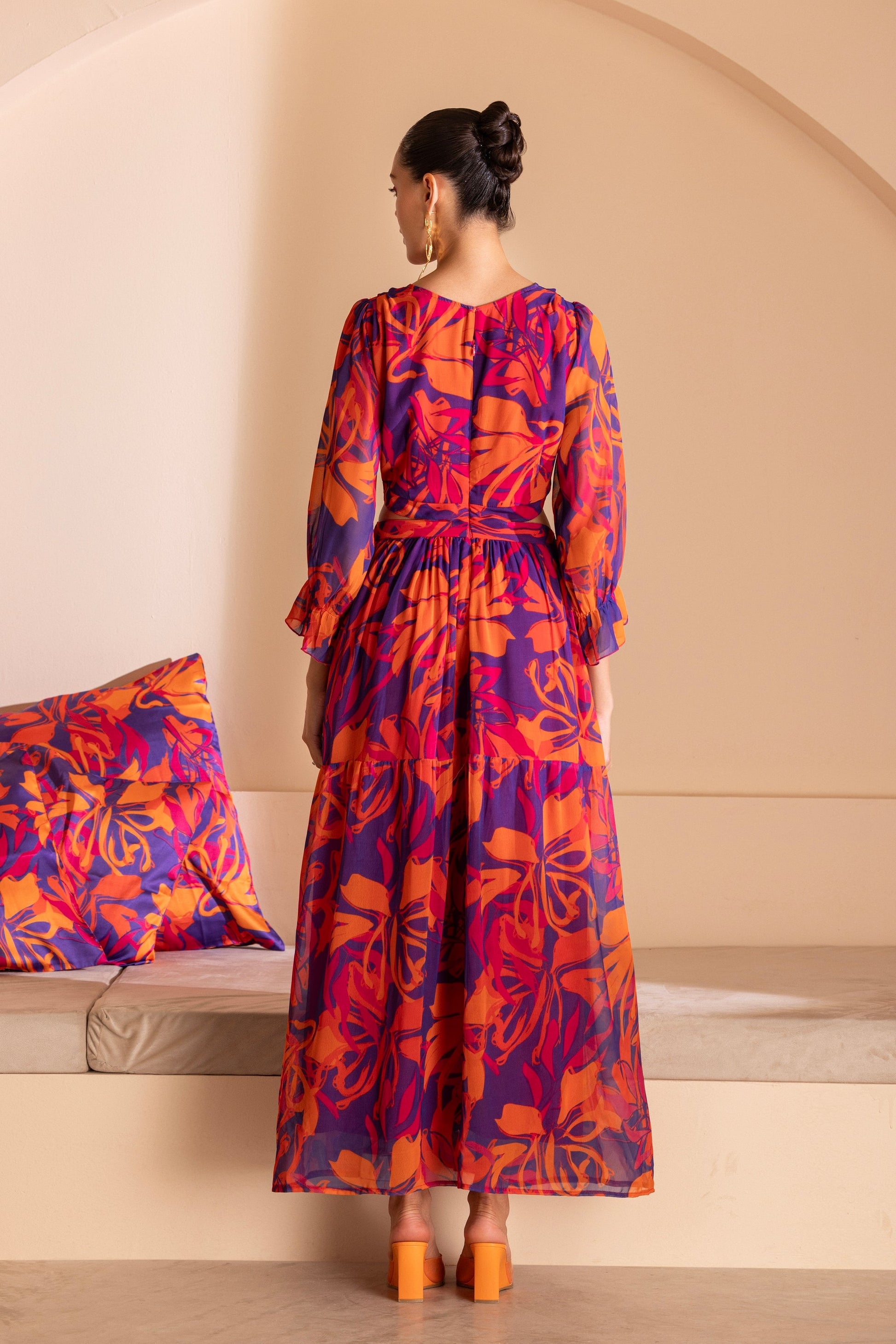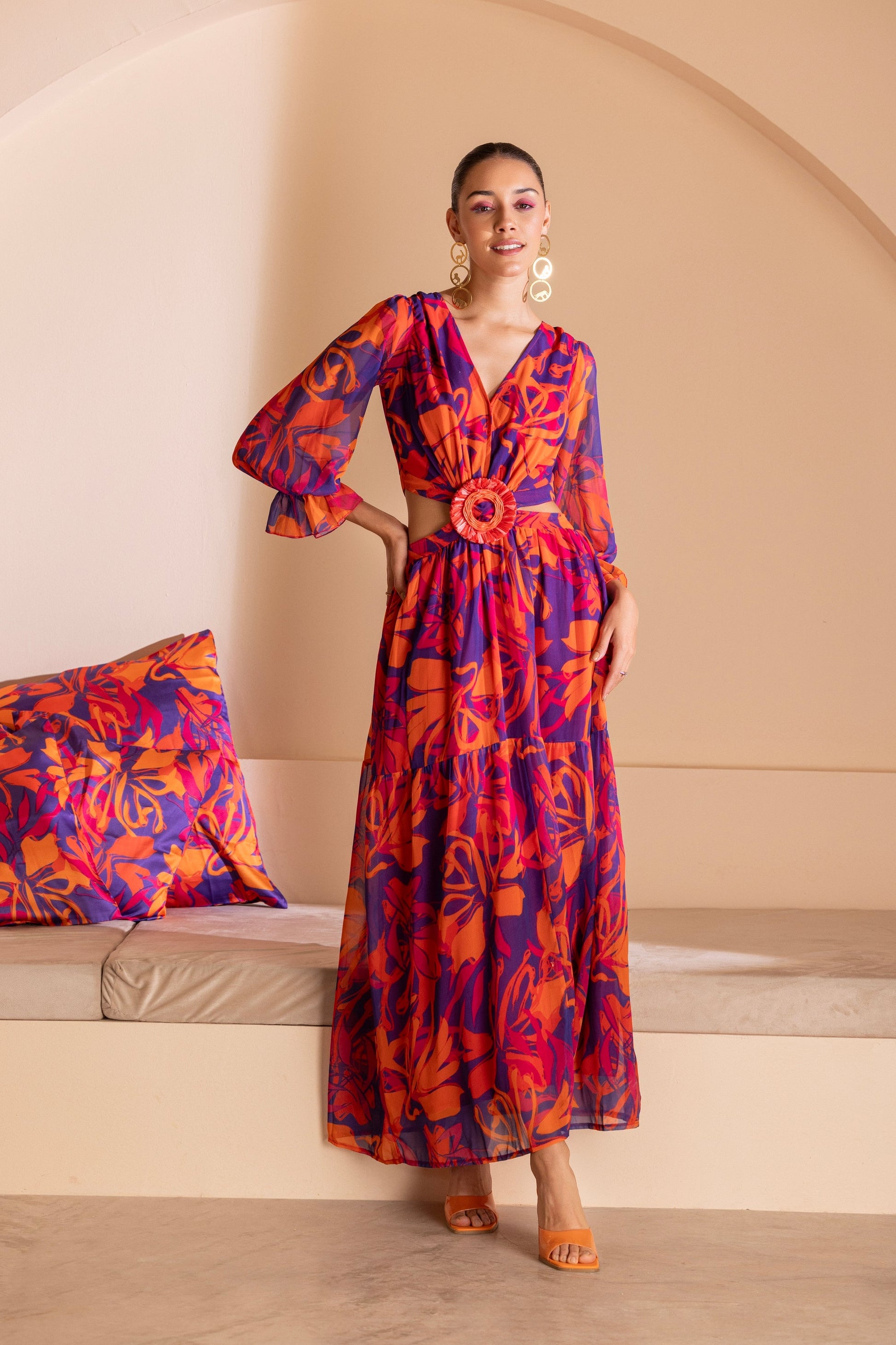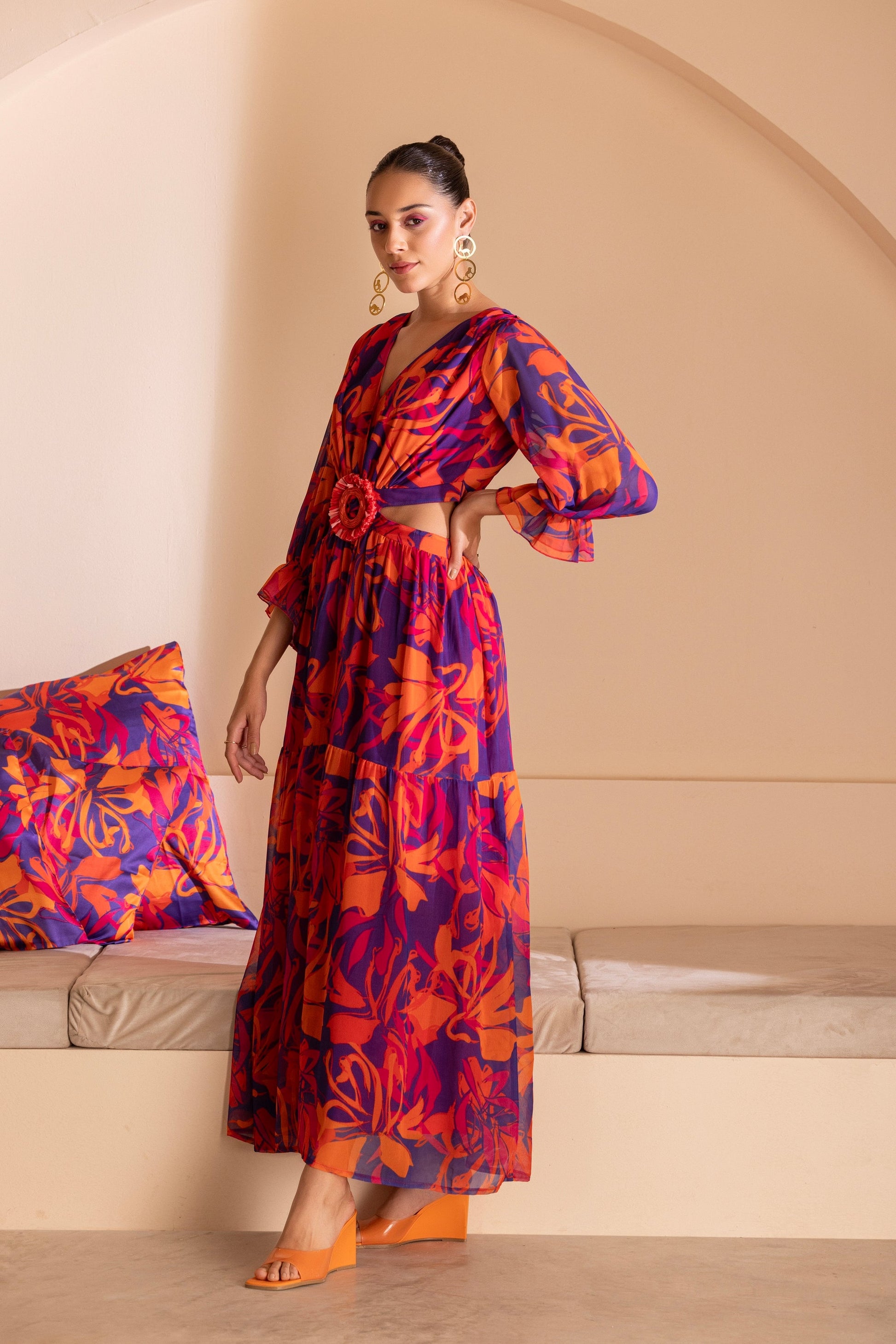 Color-Pop Cutout Printed maxi dress