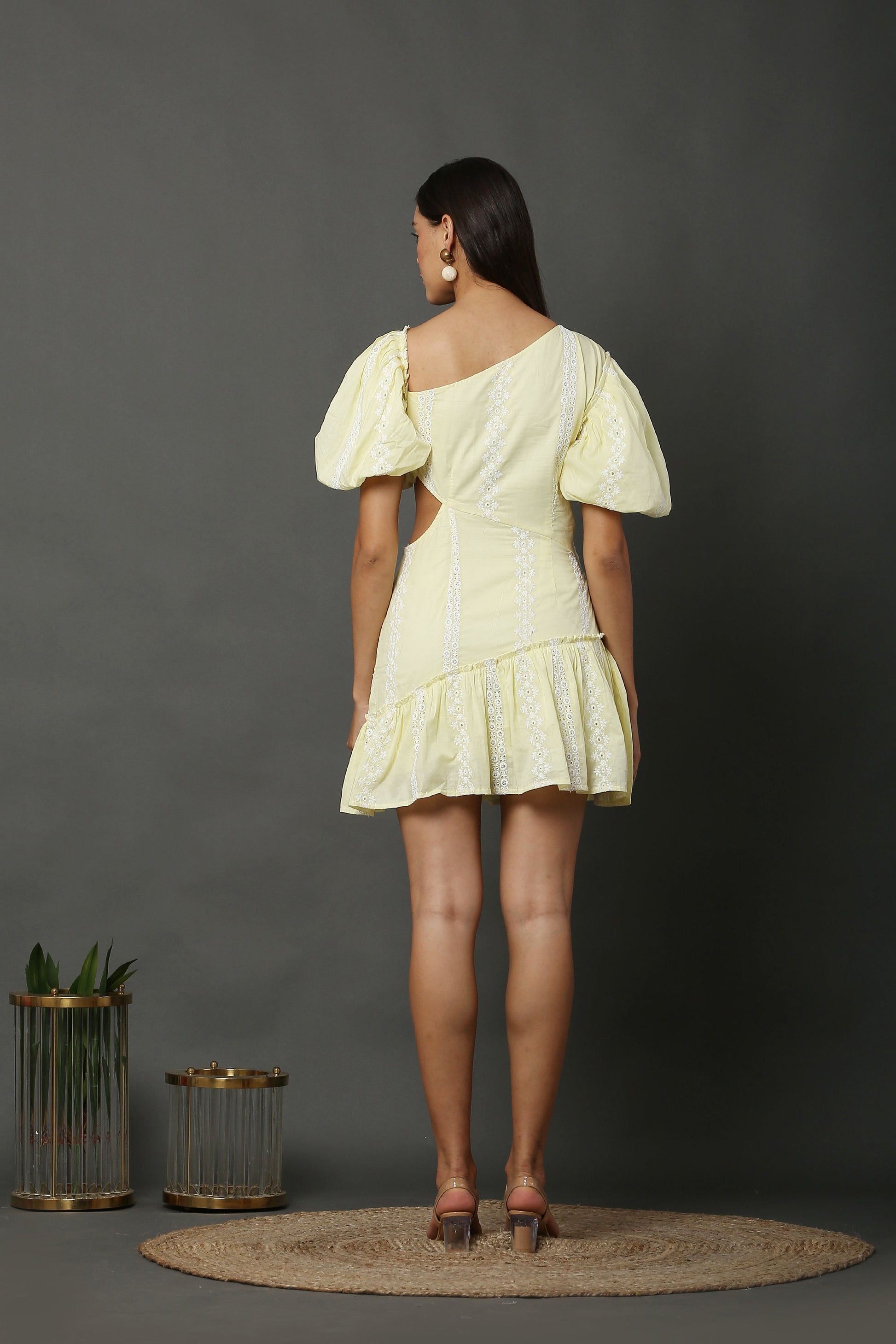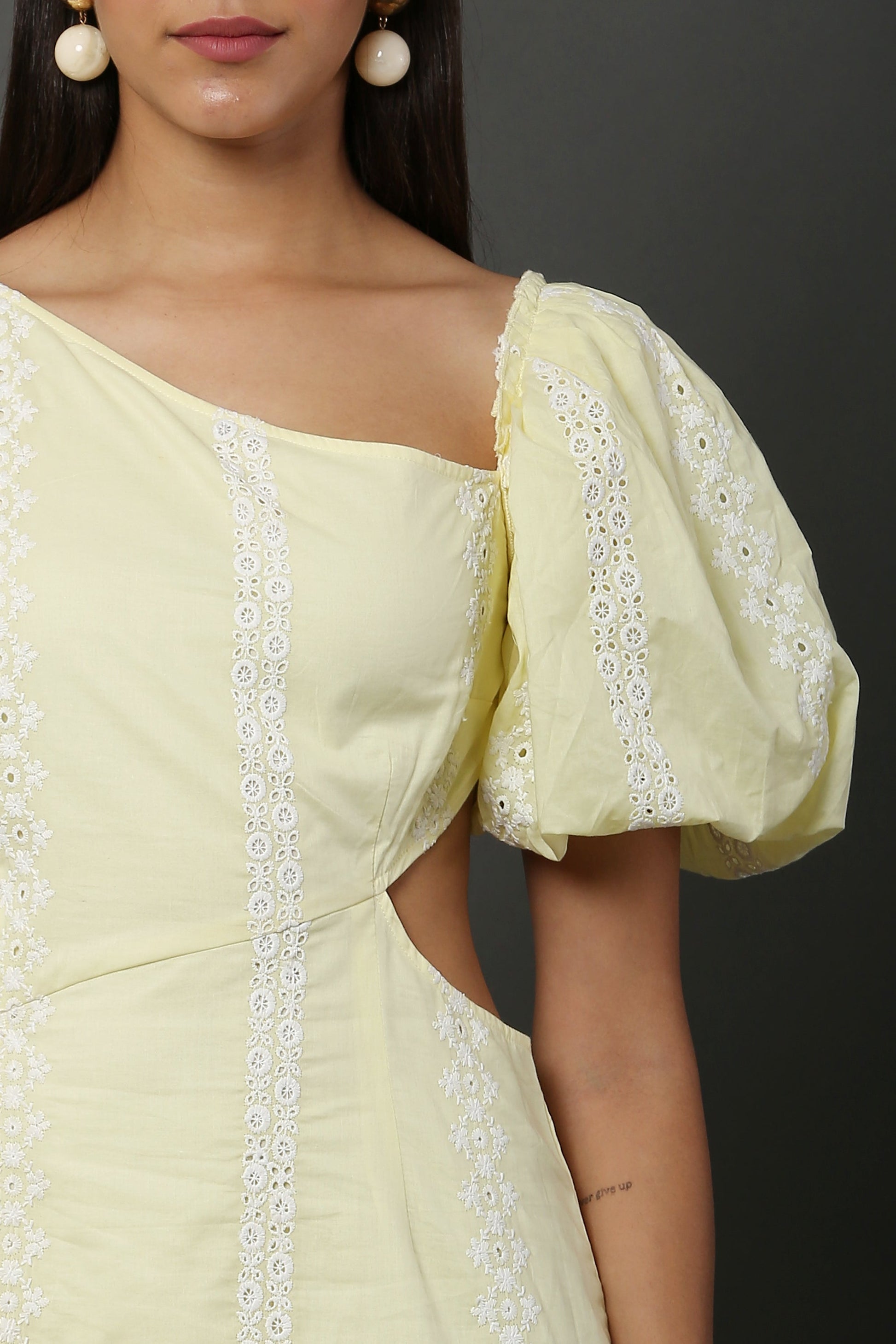 Lemon Schiffli Cut Out Shot Dress