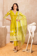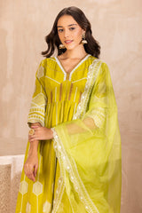 LIME CRYSTAL SUIT SET WITH ORGANZA DUPATTA