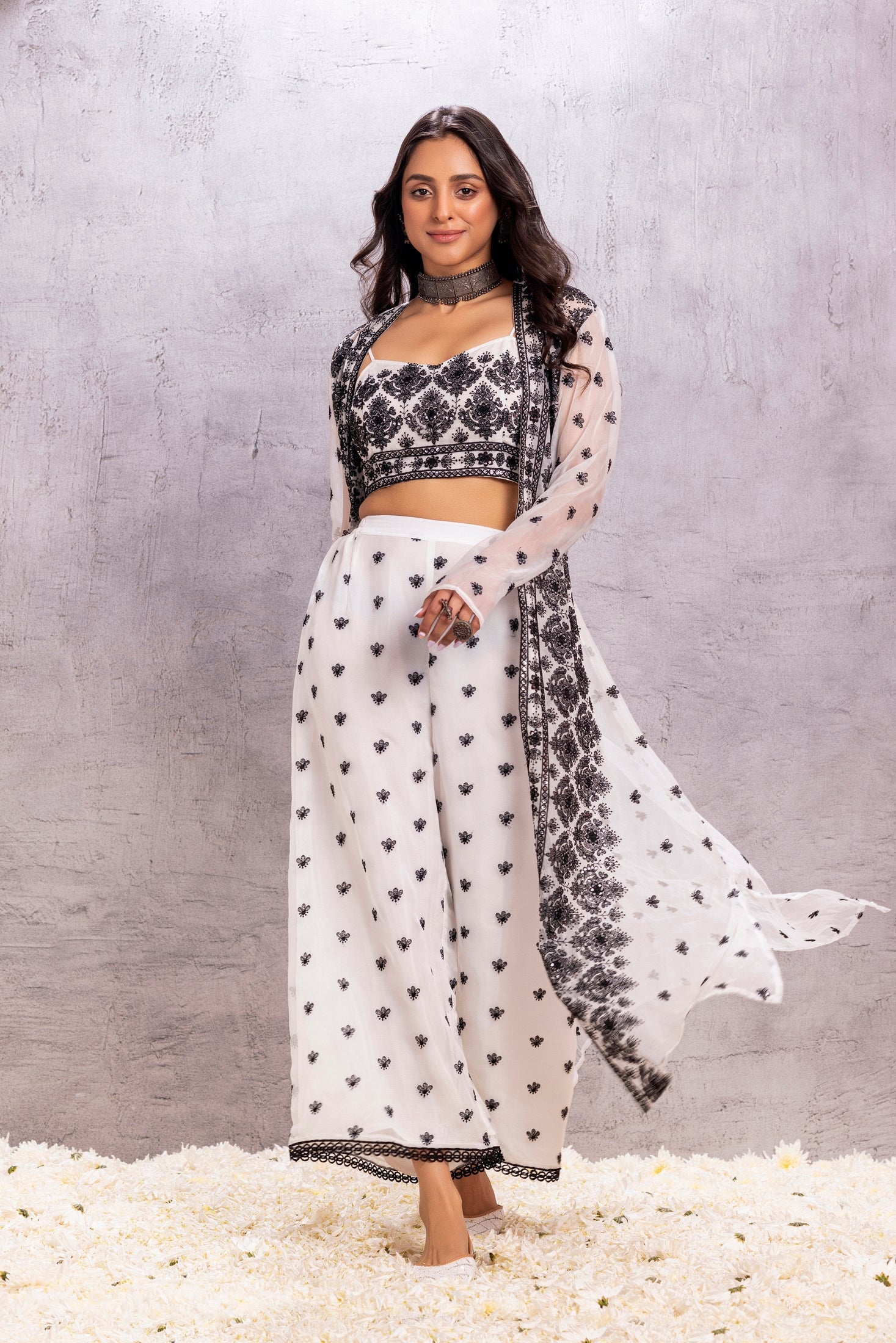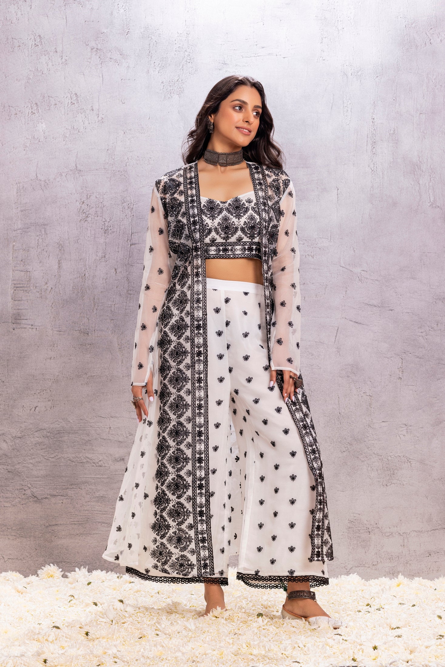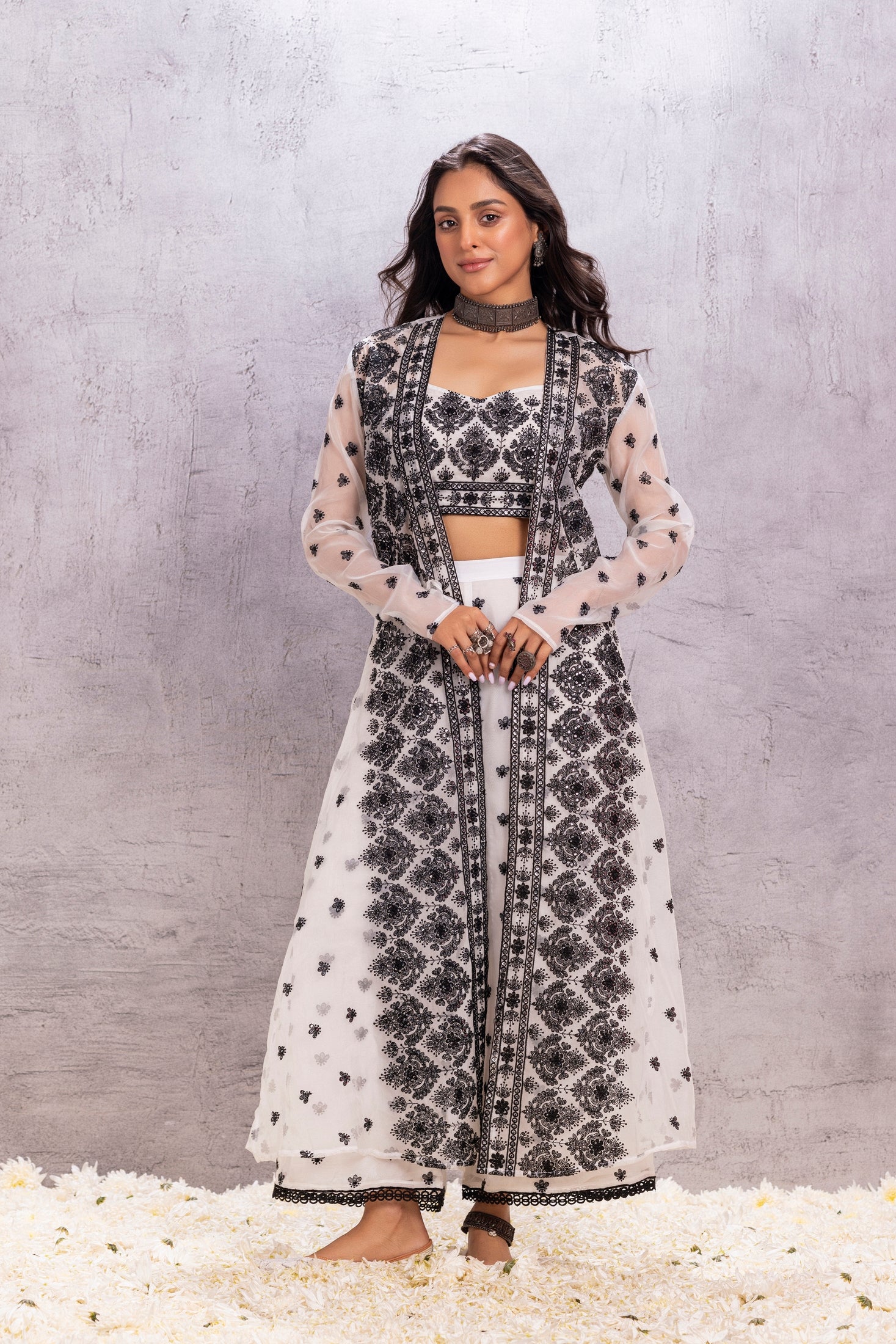 Off-WHITE AND BLACK EMBROIDERED INDO-WESTERN SET