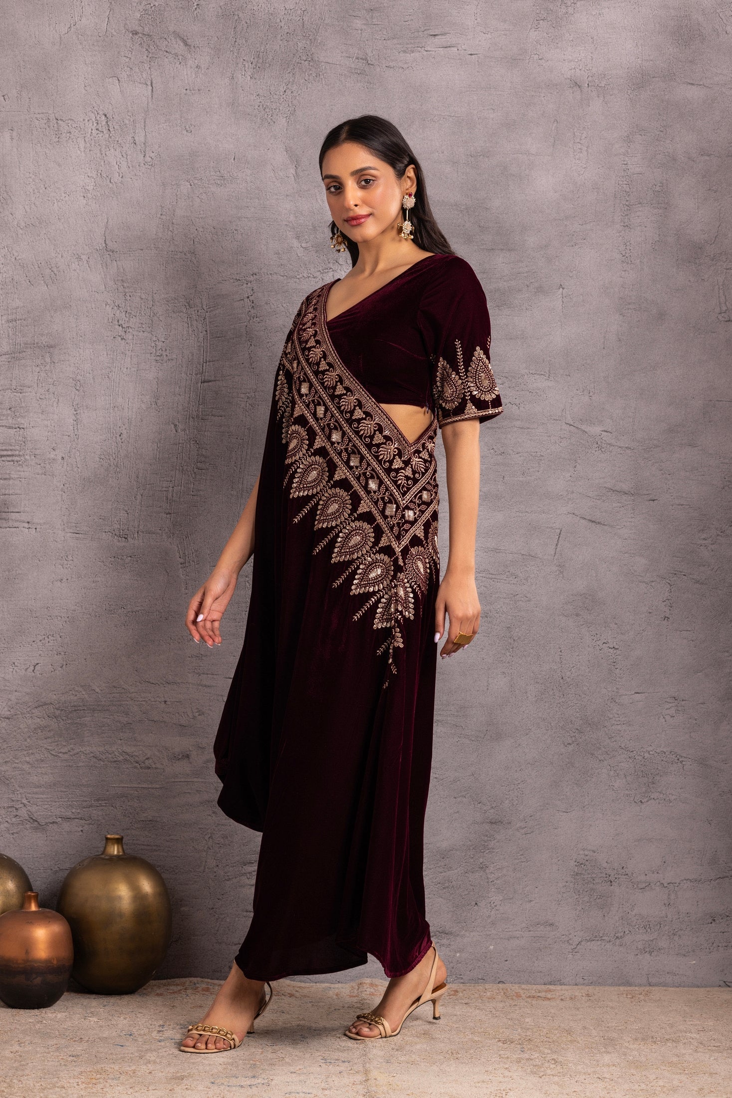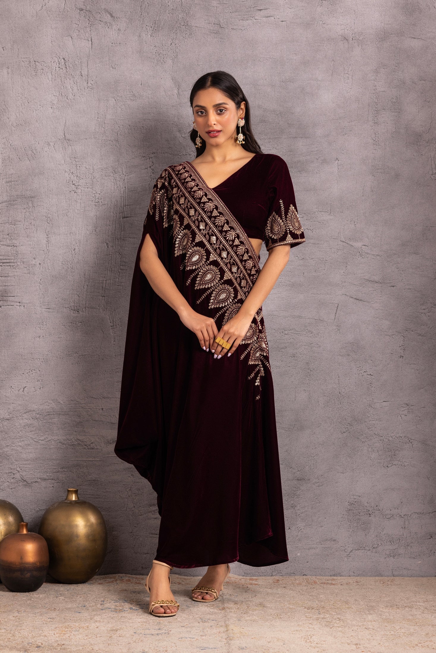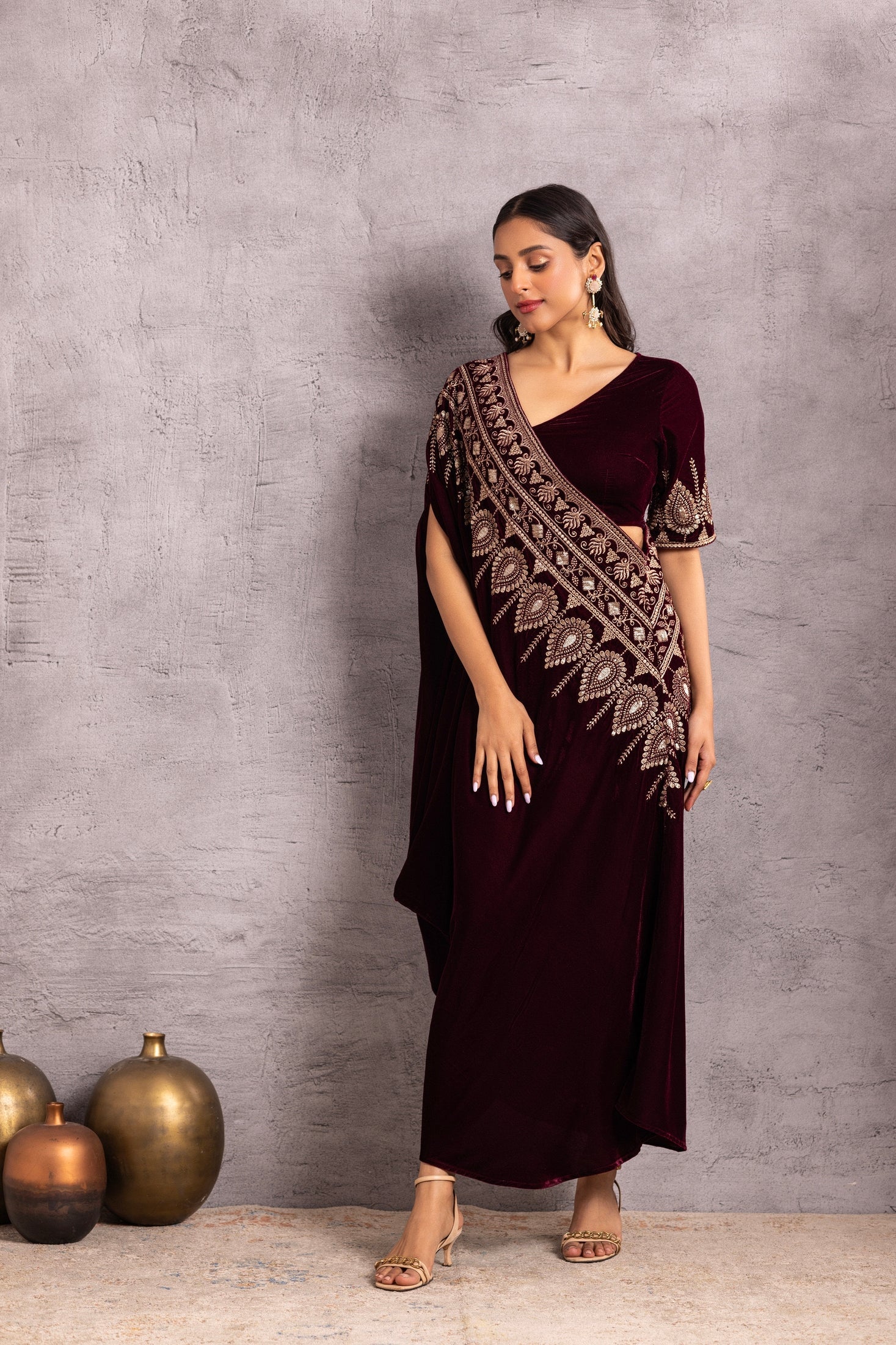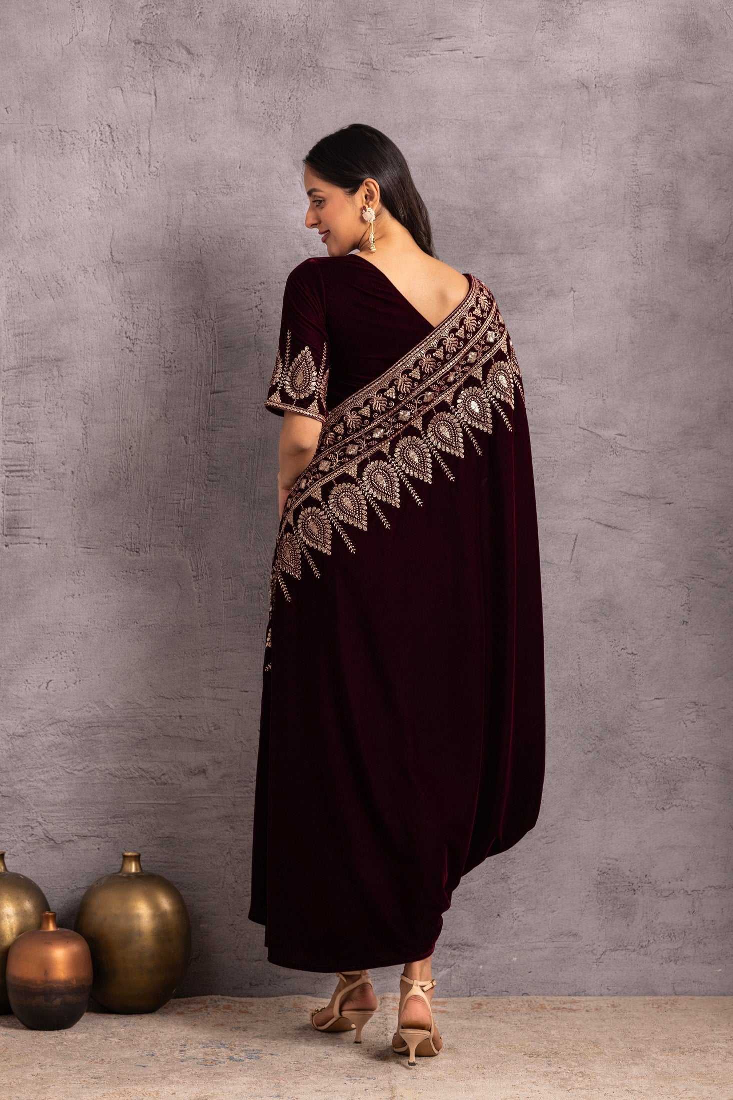 Step into royalty with our velvet collection that oozes opulence and sophistication. Embroidered with golden jari and sequence work, these regal ensembles will have you feeling like a queen. Stunning deep colors, Flattering silhouettes, Intricate Gold Lace work, paired with gold sequence embroidered scallop organza dupattas, our velvet collection is the epitome of elegance, blending traditional Indian designs with contemporary fashion. Perfect for festive occasions and weddings, each piece is truly one of a kind.